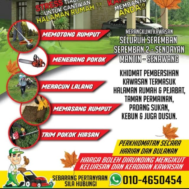 Tmn Warisan PuteriSikamatSeremban Assalamualaikumprojek tbaru pd. Perkhidmatan seperti Pemotongan RumputMenebang Pokok Mengemas kawasan rumah. Selain dari itu khidmat potong rumput dan membersih kawasan juga disediakan sekitar Putrajaya Cyberjaya Seri Kemb.