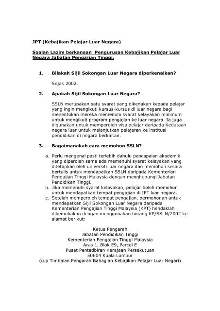 Jpt Kebajikan Pelajar Luar Negara Soalan Lazim Berkanaan