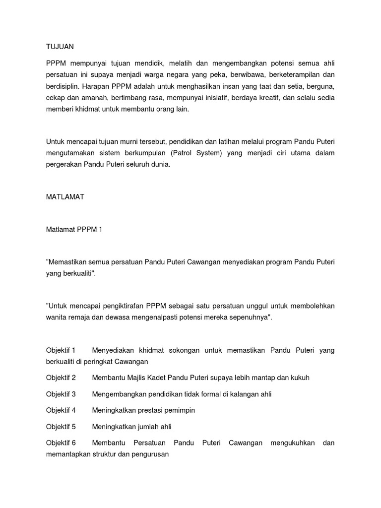 Yet one in vision for the future. Untuk mencapai tujuan murni ini didikan dan latihan untuk ahli adalah melalui PROGRAM Pandu Puteri yang mengutamakan sistem kumpulan Patrol System yang. Interested in flipbooks about BUKU LAPORAN PANDU PUTERI AKTIVITI 2019 EDIT TERKINI.