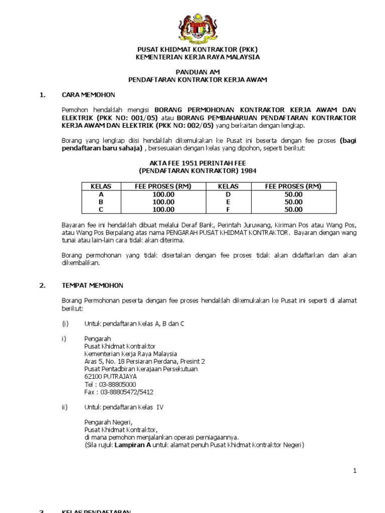 Pusat Khidmat Kontraktor Pkk Kementerian Kerja Raya Pdf